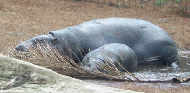A pygmy hippo and baby...who