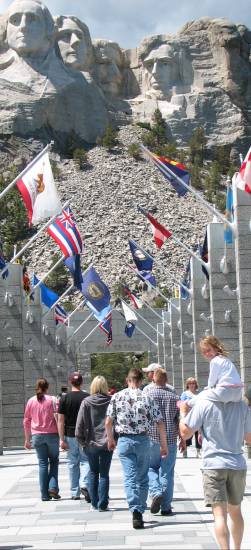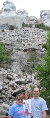 The first stop had to be Mount Rushmore. After all the talk about "the big heads" I still can't believe it! They are really BIG! Are you keeping up back there? HURRY! |