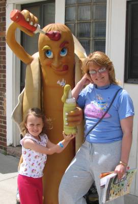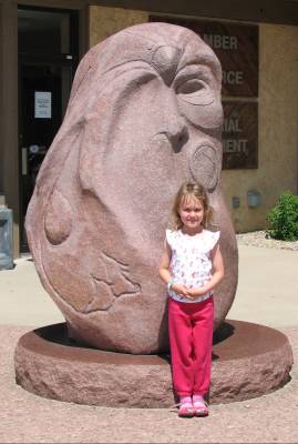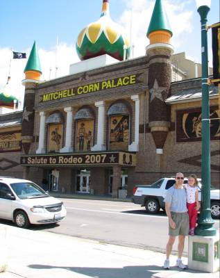 before 6 AM! By noon we had made it to Mitchell. I wasn't sure what a "corn palace"was and wasn't sure I wanted to go in but I did agree to go in and enjoyed it. I loved the Heritage Doll Museum across the street, especially the baby and bride dolls. Still early in the trip I was willing to have my picture taken with